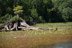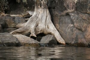 But as the roots of ancient white pines fade and bleach, they become natural art.